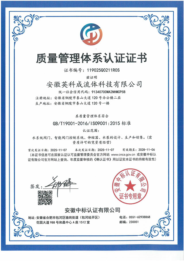 當(dāng)前位置:首頁 > 榮譽(yù)資質(zhì) > 質(zhì)量管理體系認(rèn)證證書